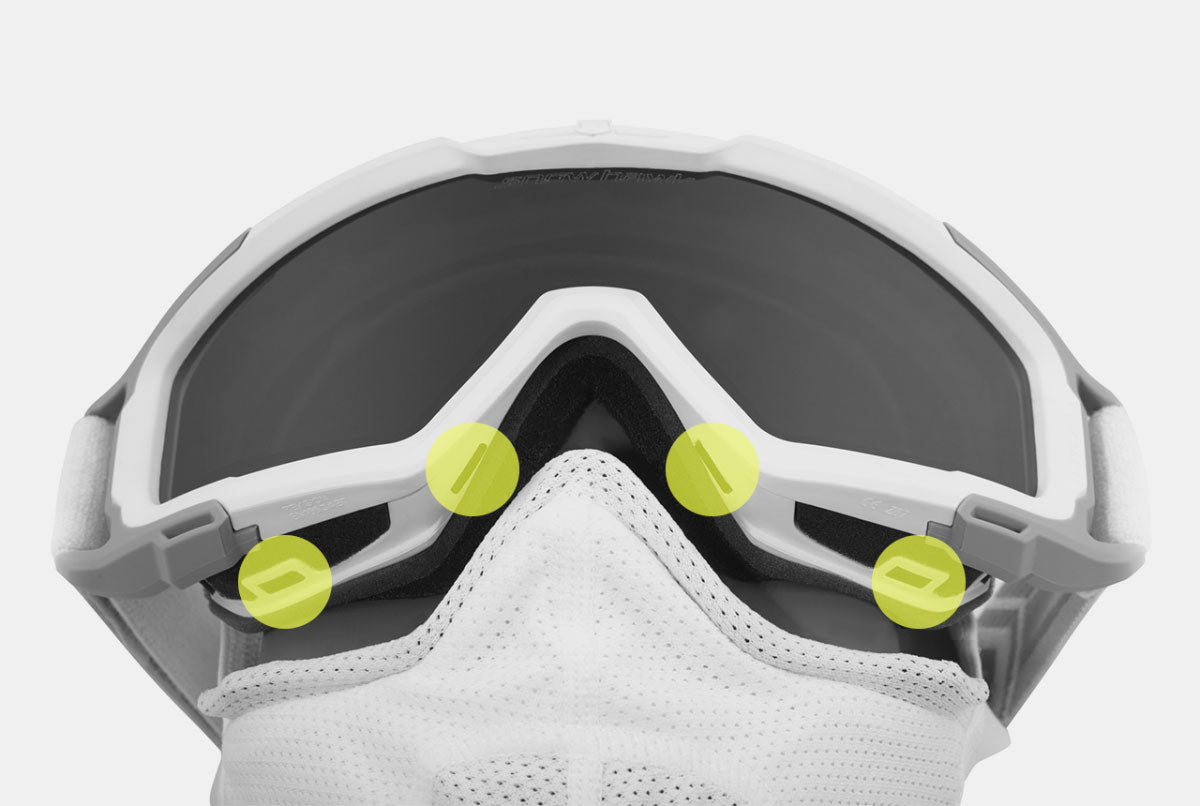 Leveraging Anon’s Magnetic Facemask Integration (MFI) technology, our GrypMag Technology integrates the goggle and headwear, forming a full-facial seal